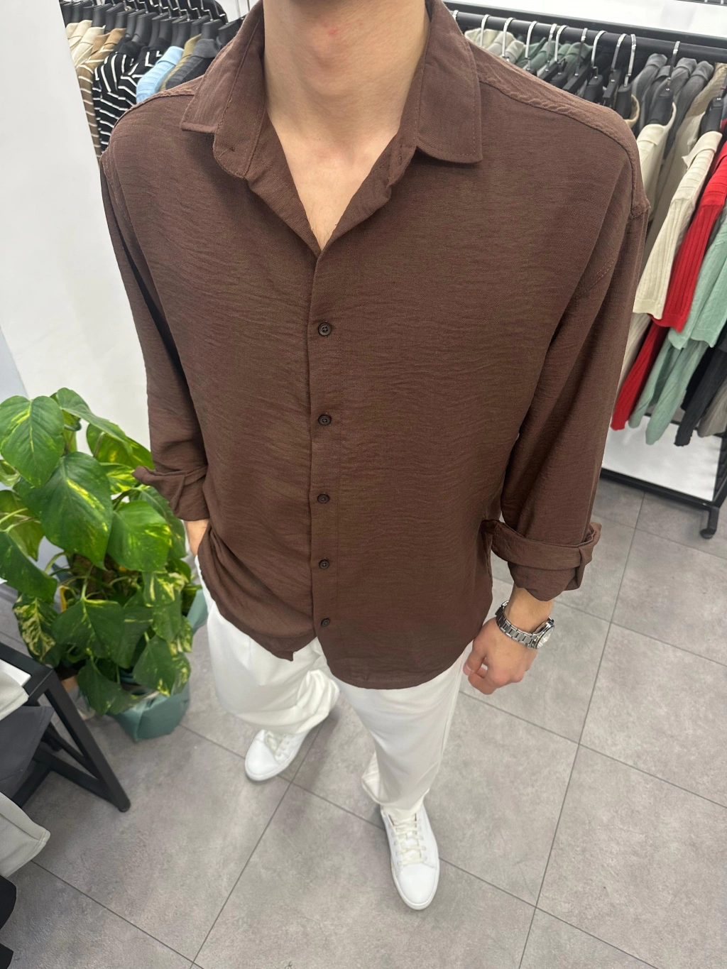 Ham Keten Gömlek Kahve