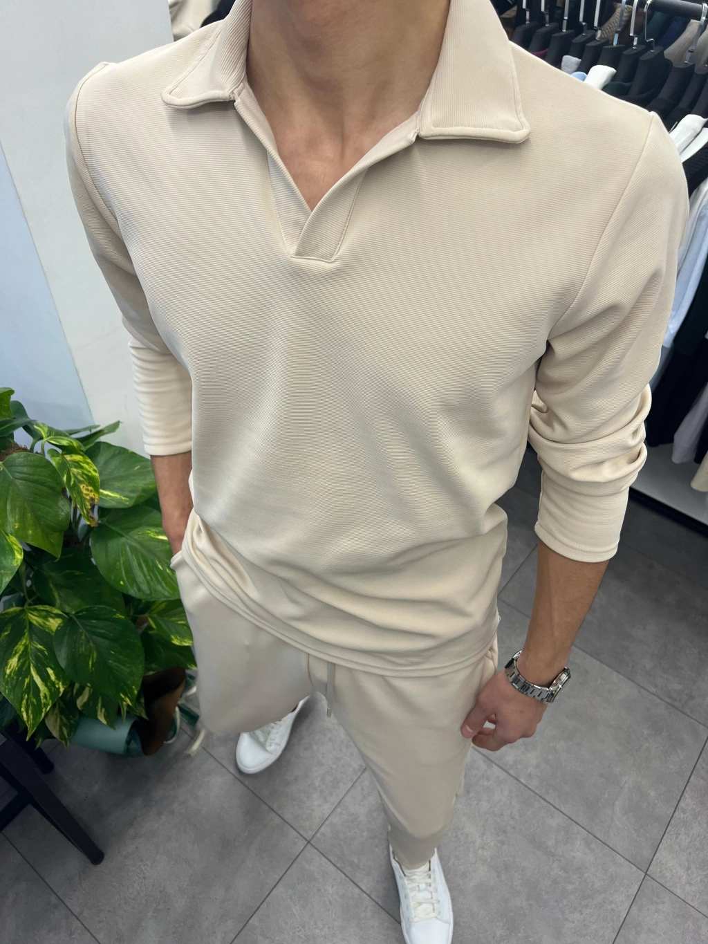 Düğme Detaylı Düz Çizgili Polo Yaka Triko Beyaz