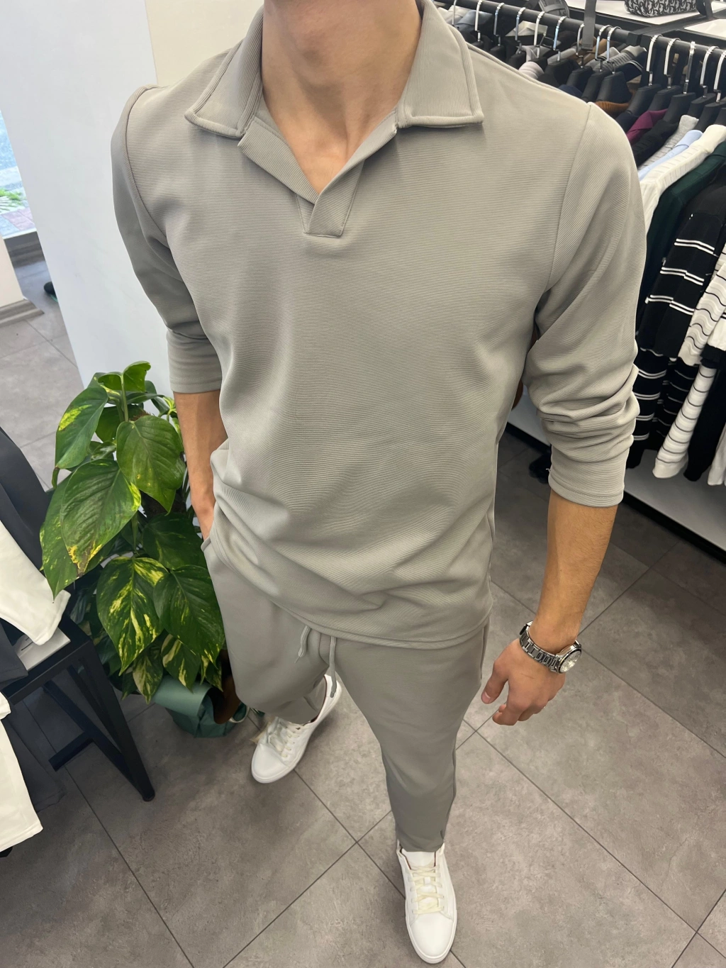 Düğme Detaylı Düz Çizgili Polo Yaka Triko Siyah
